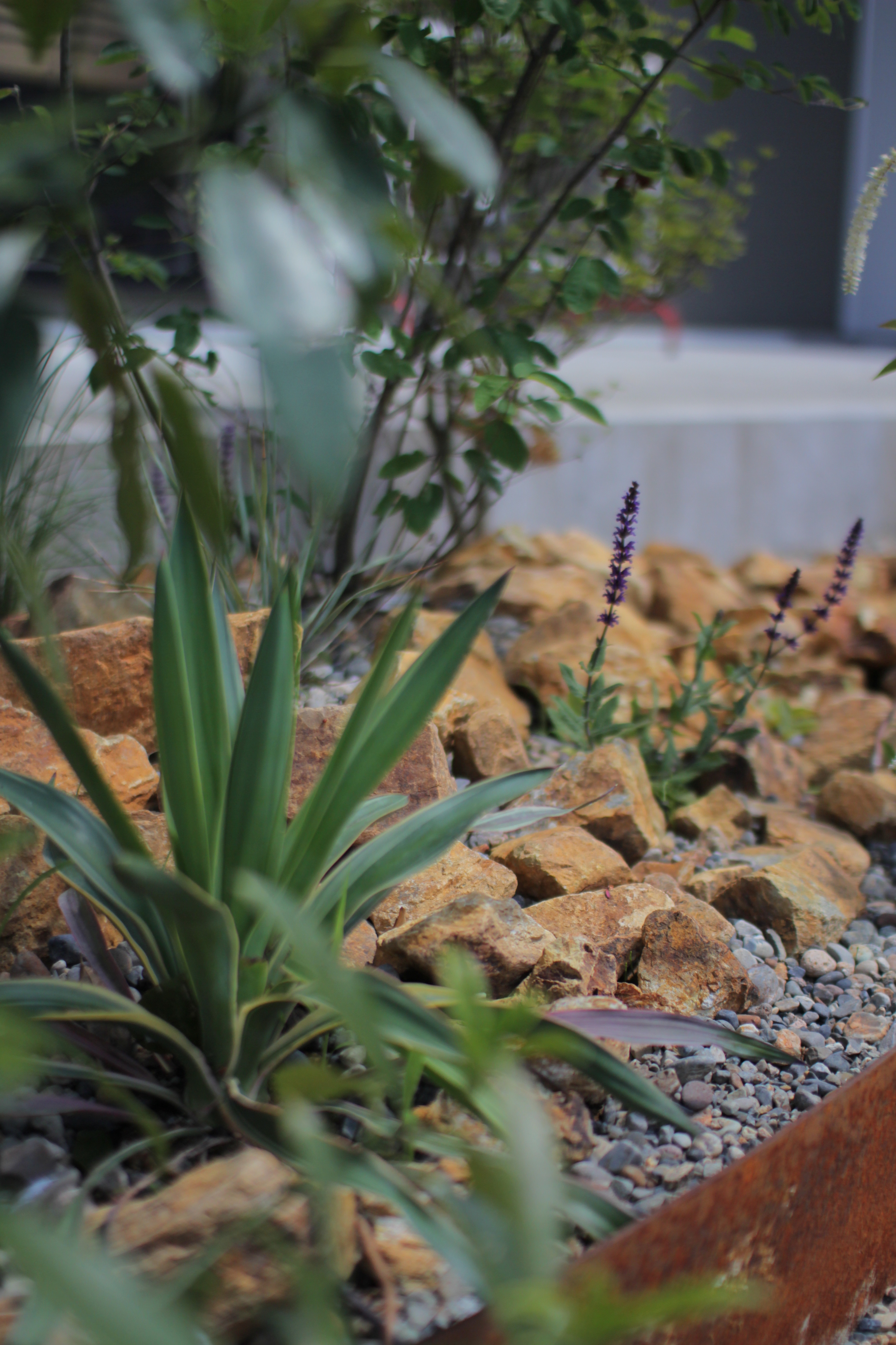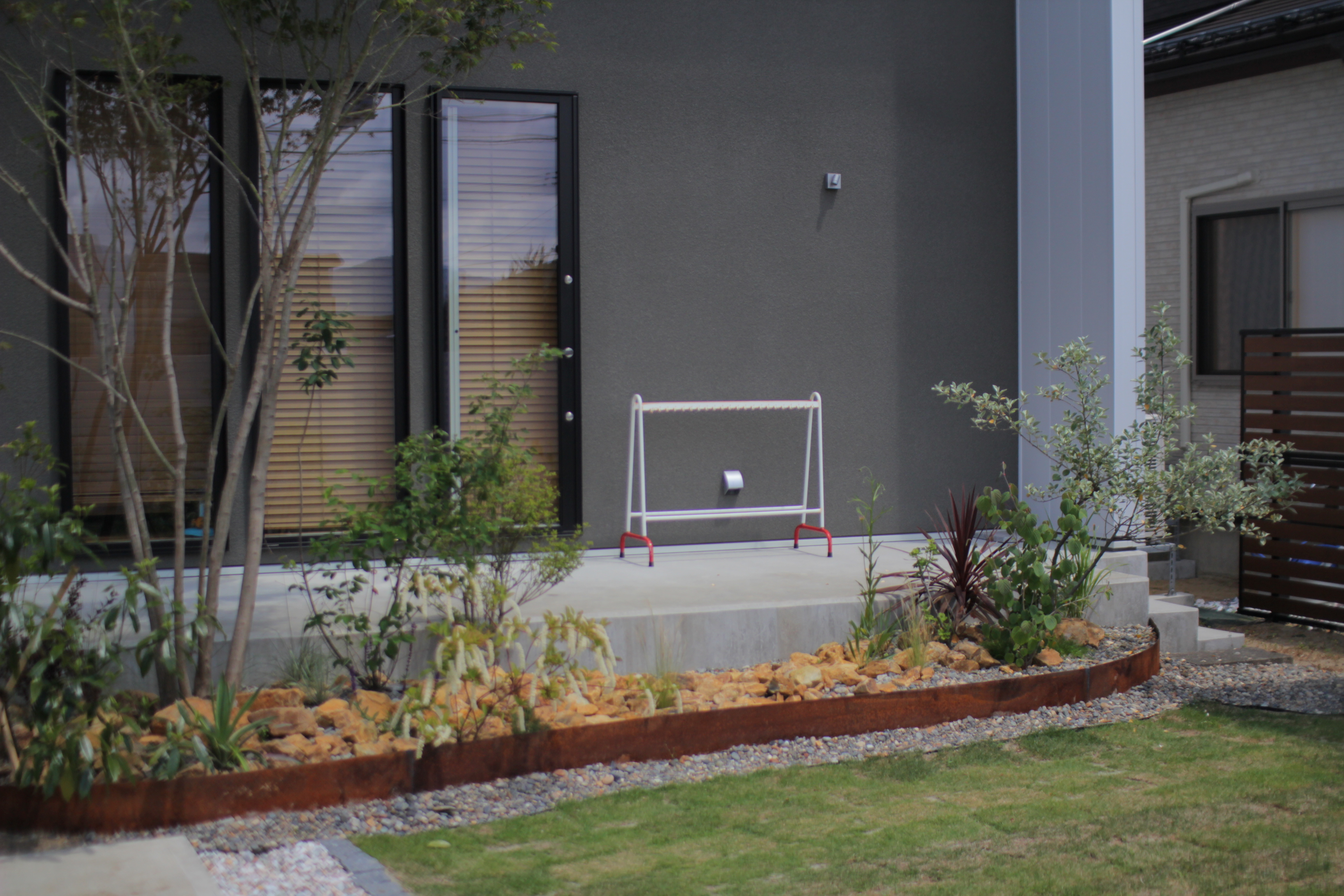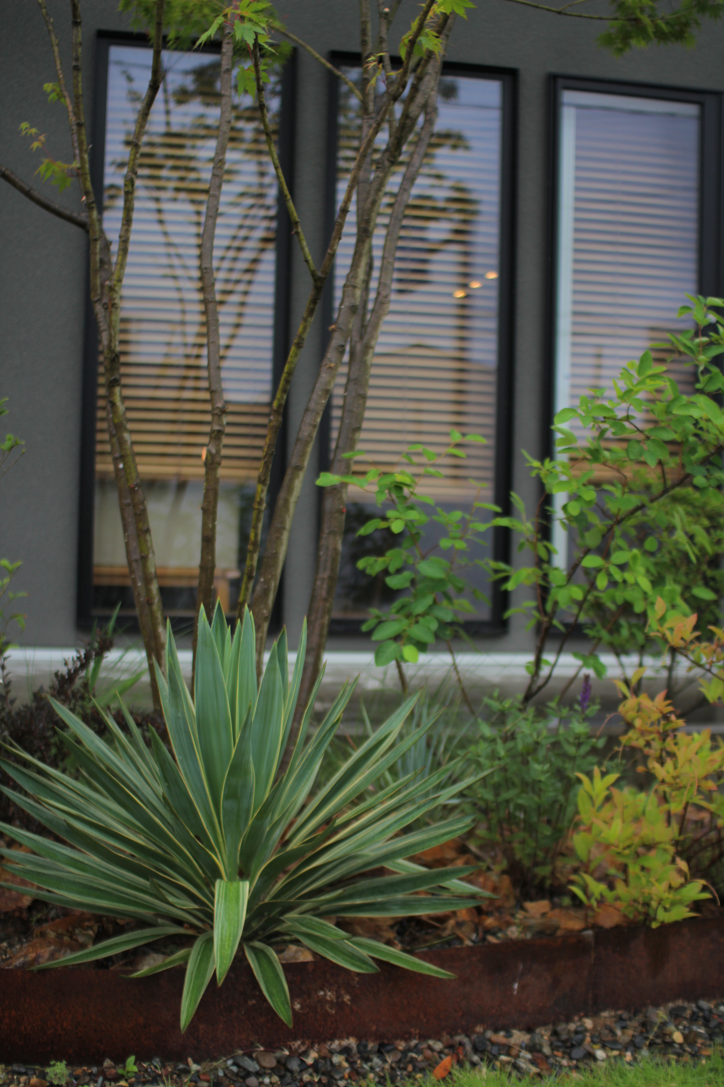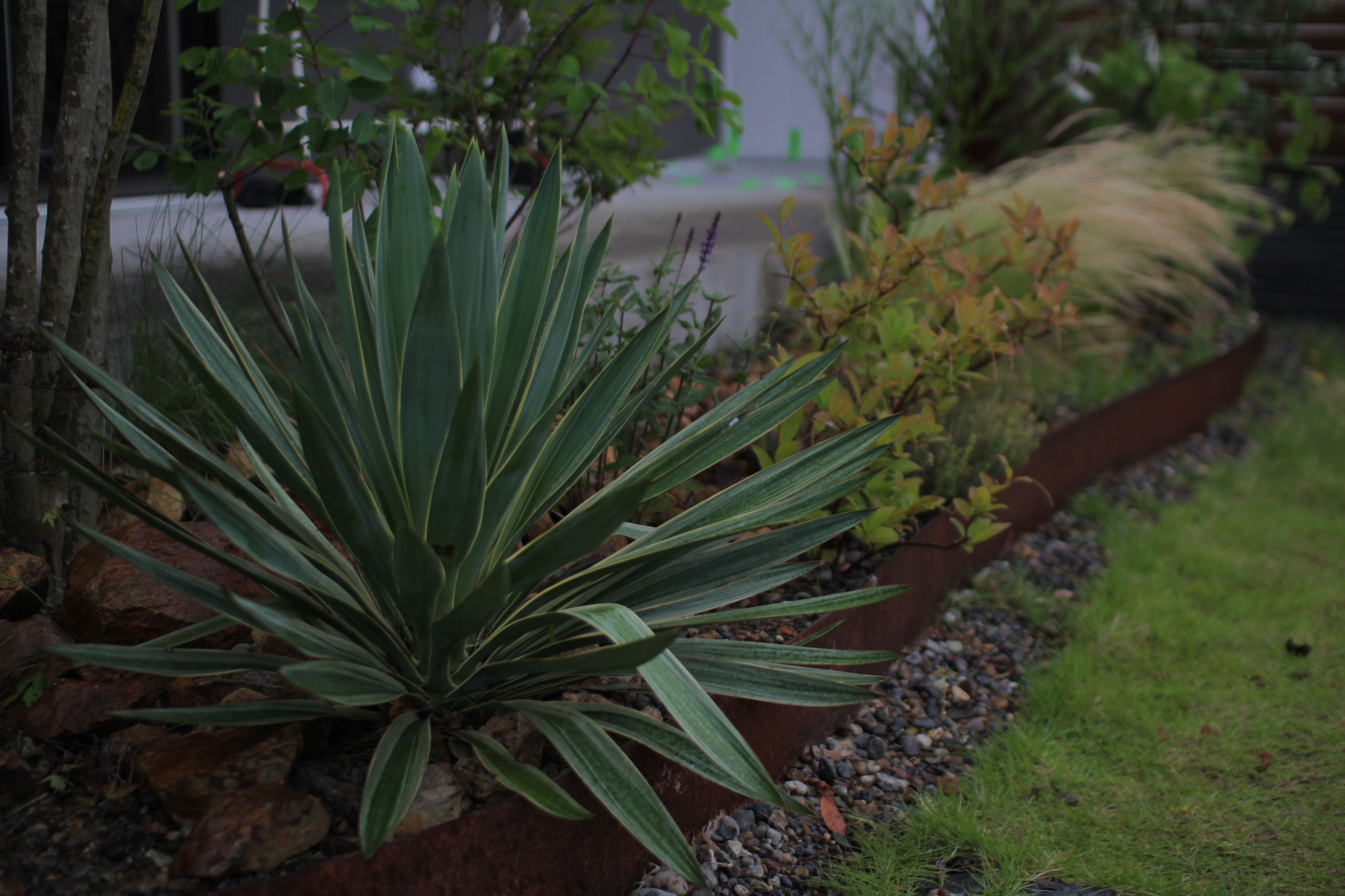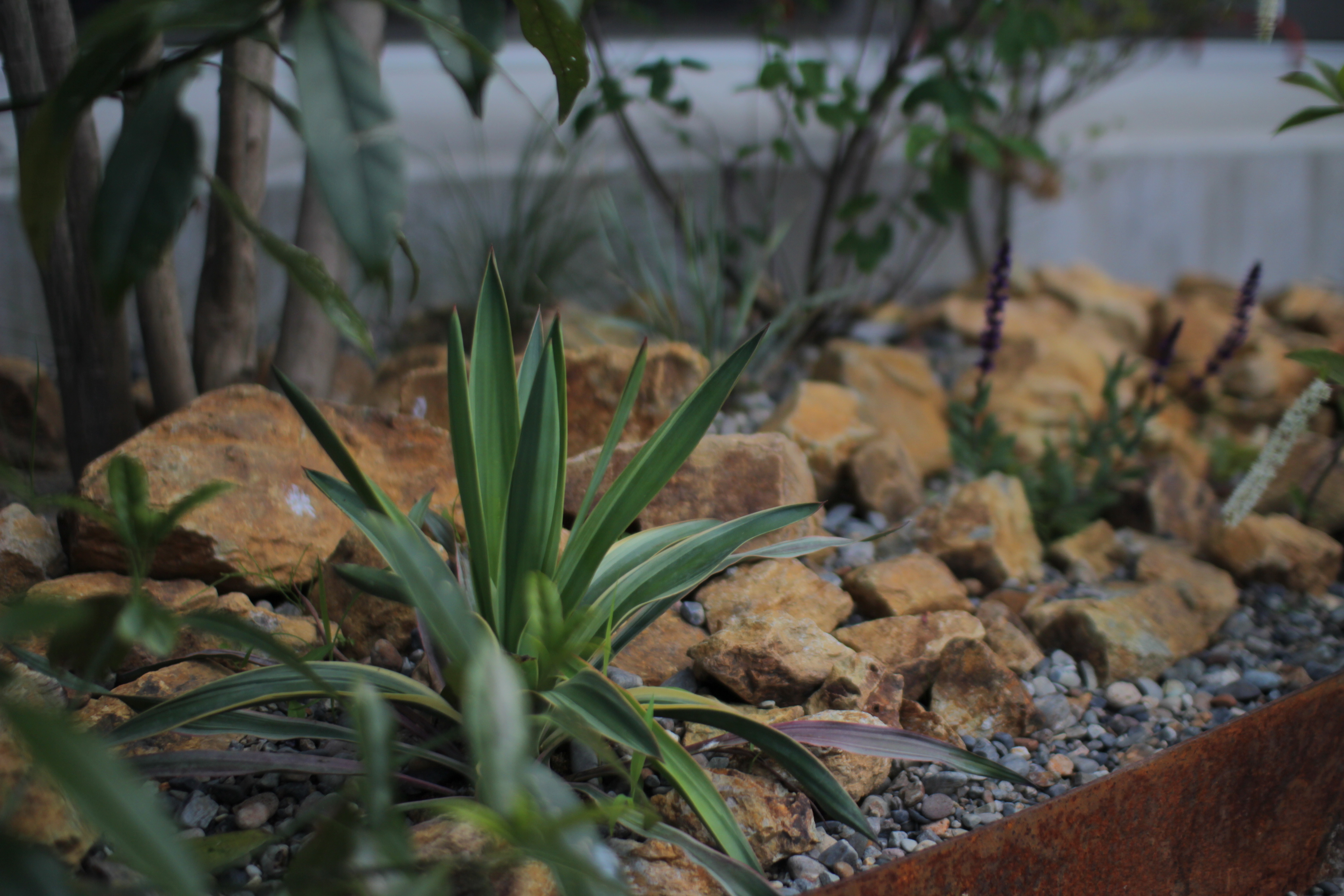 ユッカを入れたドライガーデン風の庭。