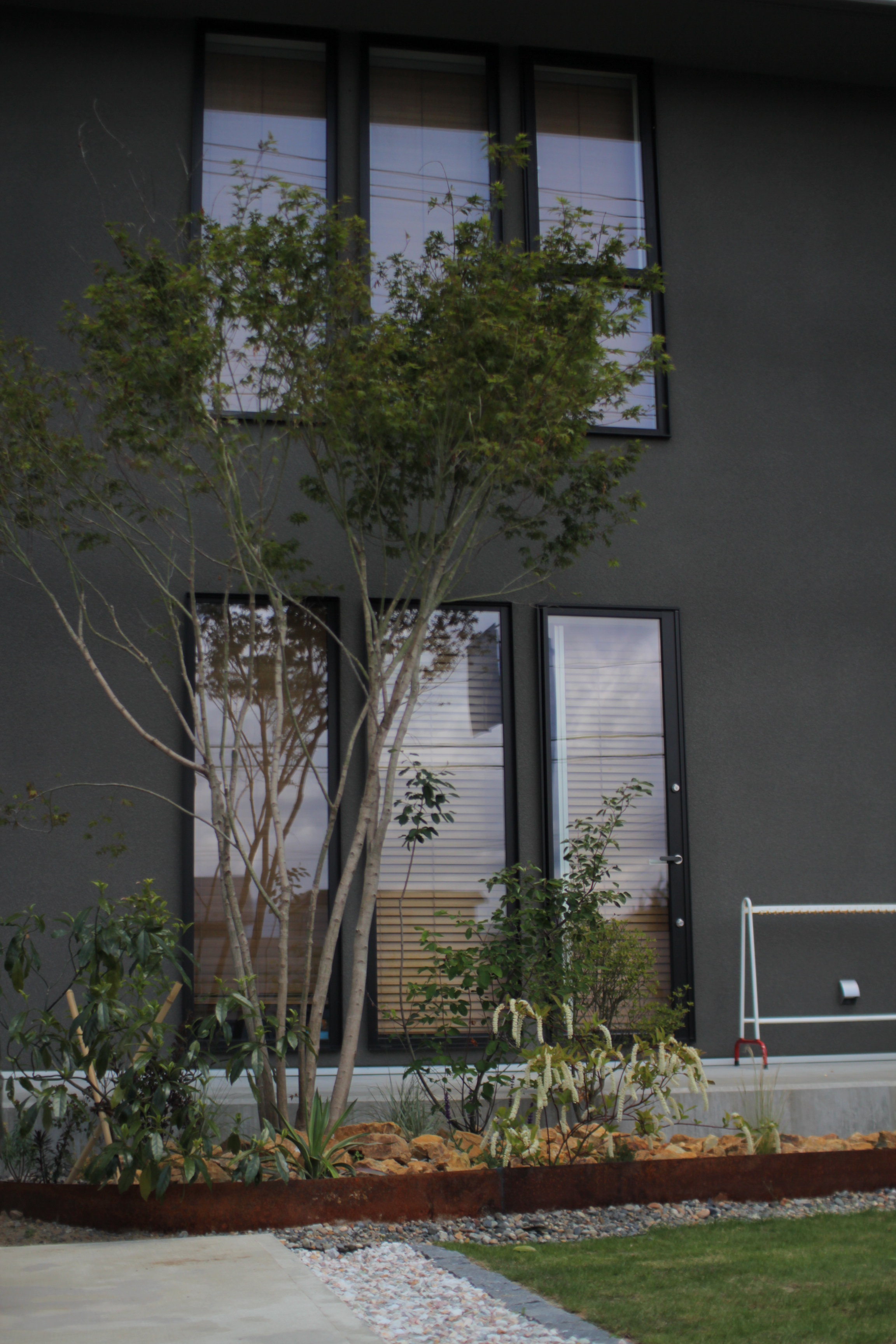 施主の希望で、アオダモを軸に植栽を導入。